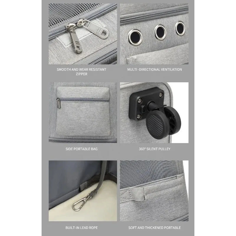 Design: Dual-compartment rolling pet carrier backpack